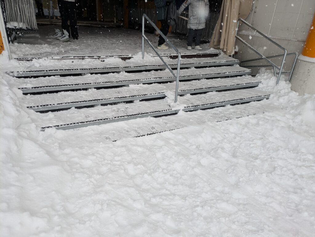 降雪量が多いと階段が埋まり、雪の階段が現れます。