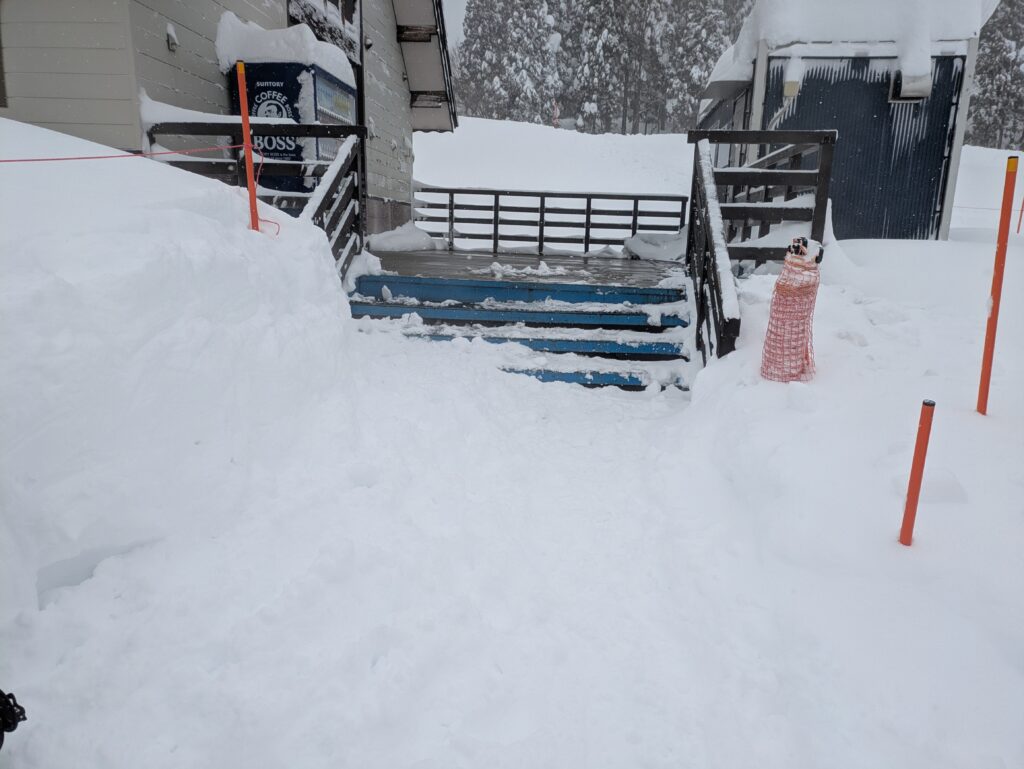 見ての通り、除雪してないところは板が埋まりそうです。